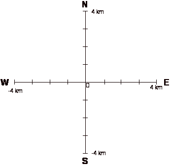 A: 1.5 km due North