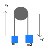 Two masses are supported by a pulley, which can be modeled as a solid