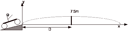 the top of the ramp at a distance, D, from the end of the ramp, as shown below.